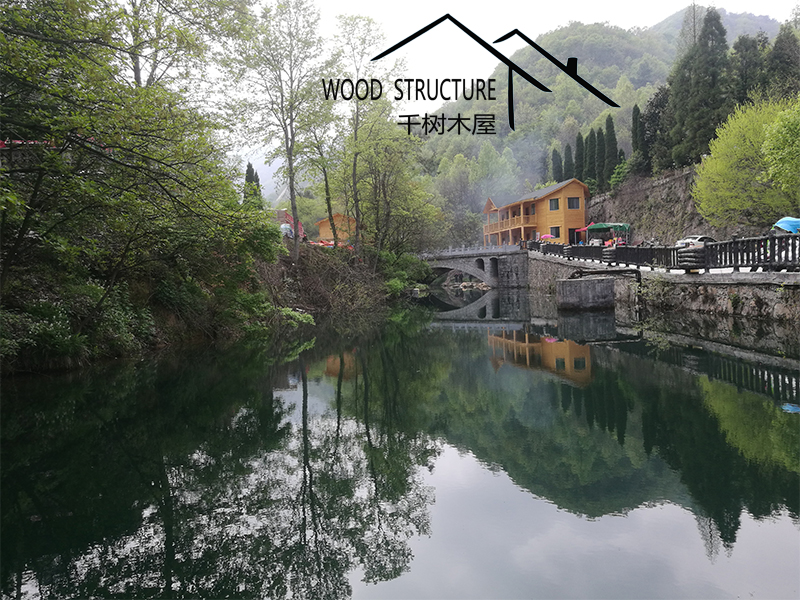 風景名勝區(qū)的復式辦公樓木屋和20個售賣小木屋由河南千樹木業(yè)有限公司(以下簡稱千樹木屋)設(shè)計并建造。