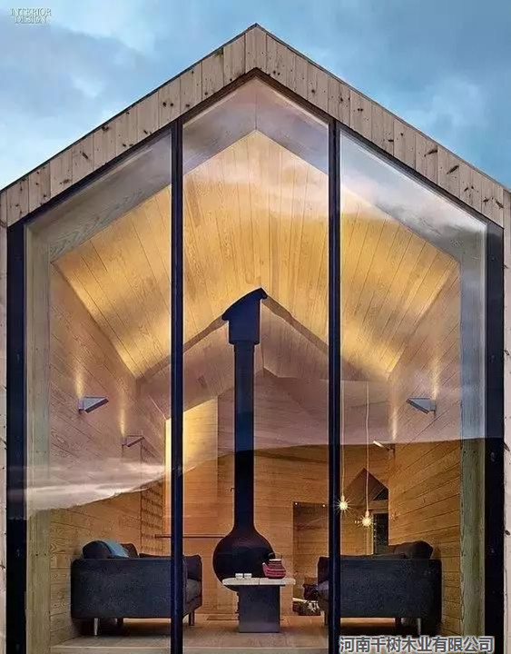 同體的木構(gòu)配上正面的落地窗,