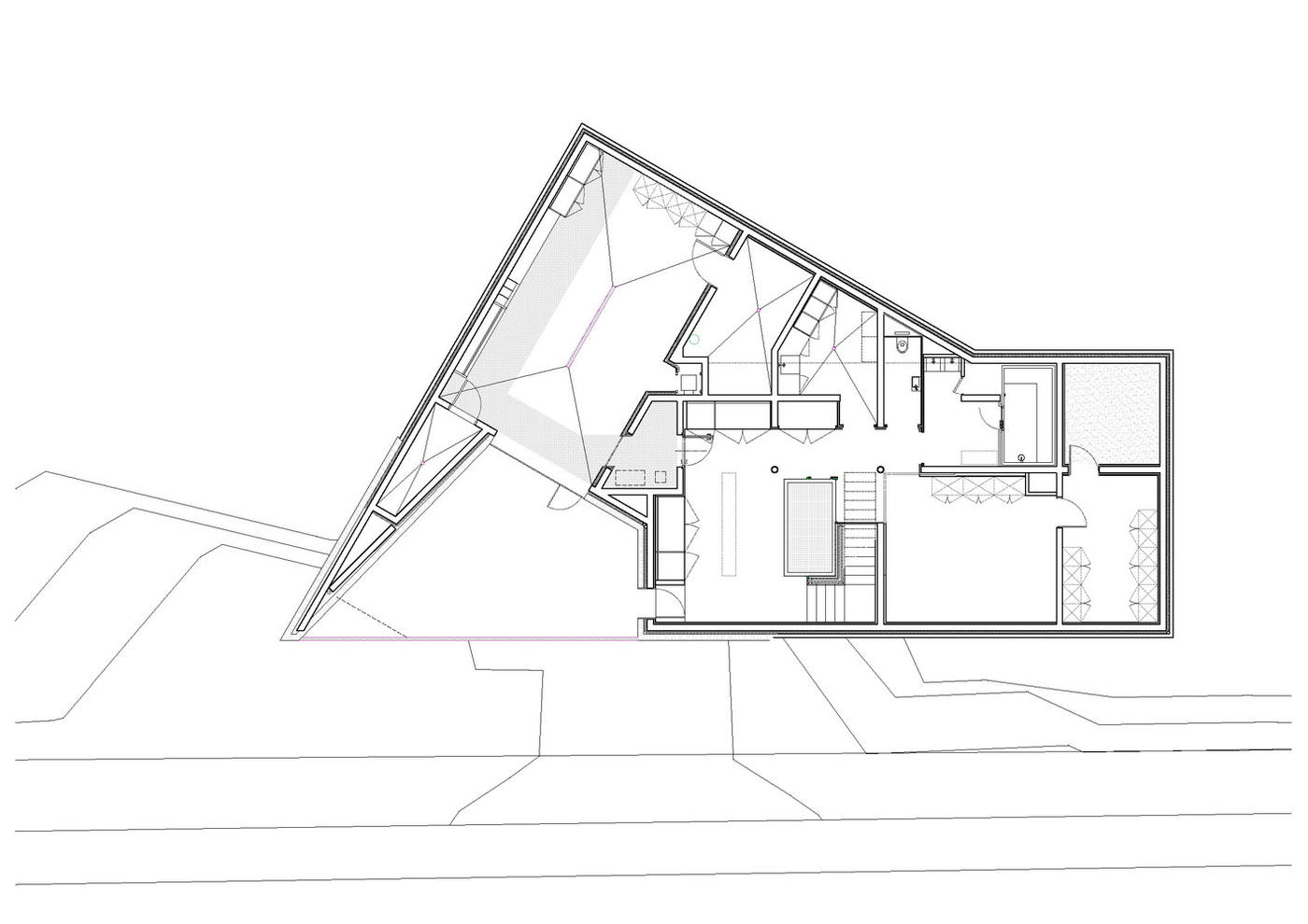 應(yīng)老客戶的要求,建筑師在夏蒙尼山谷設(shè)計(jì)了一座新的小屋,并監(jiān)督了它的建造過(guò)程。 其場(chǎng)地位于50年代建成的住宅區(qū)內(nèi)。從場(chǎng)地原始的總體規(guī)劃中可以看出這里以前也是一座小屋。