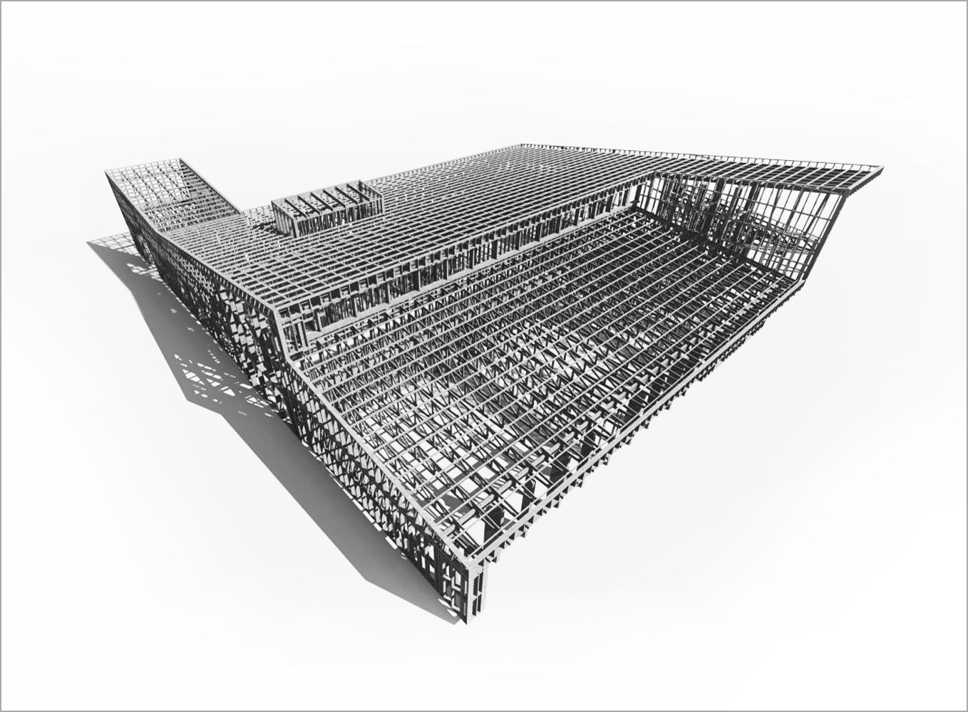 “該結(jié)構(gòu)主要用輻射松和層壓木建造。該結(jié)構(gòu)使用 Cadwork 軟件建模,并使用 CNC 技術(shù)執(zhí)行,從而實現(xiàn)快速、干凈的組裝并減少項目的整體碳足跡。”