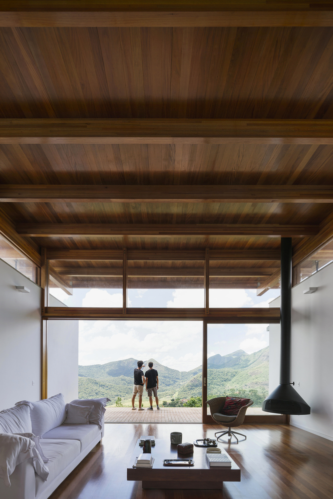 這些方案的連接形成結(jié)構(gòu)軸心,創(chuàng)造了兩條連接到外部的路徑:縱向的軸可以變?yōu)榻^美的外部景觀,至于另一條橫向的軸線,則可以明確表現(xiàn)出多種多樣的交叉路口和配制出房屋的居住形式的環(huán)境。單層的構(gòu)造再一次確保了環(huán)境之間連續(xù)性以及內(nèi)外空間連續(xù)性的這一前提。通過擴(kuò)展房屋在同一區(qū)域中的所有內(nèi)在應(yīng)用,探索不同的地塊應(yīng)用與體驗(yàn)得以成為可能?;蚴窃趦?nèi),或是在外。只有在游泳池的位置有一處樓層平面變化,其被兩個臥室側(cè)廳的厚片所整平。