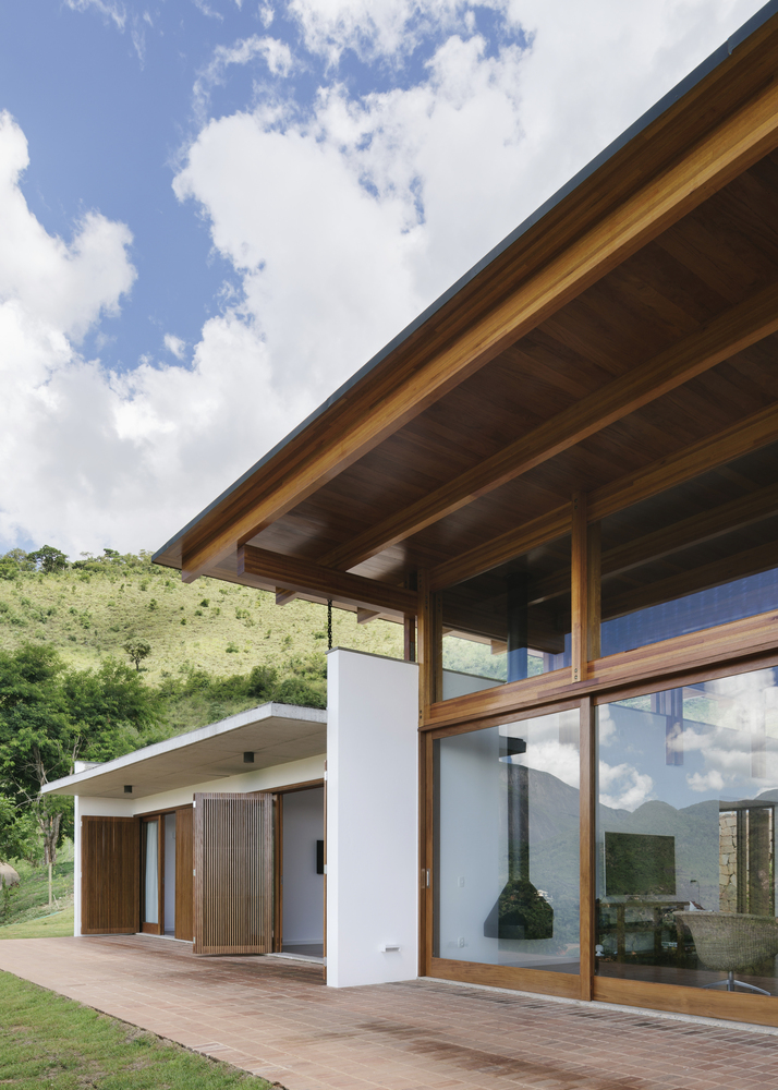 被草坪覆蓋后,它們形成了新的樓層,使得觀景臺的結(jié)構(gòu)布置有個空中的穹頂做保護(hù)。所有與外部相連的空間和它們之間的聯(lián)系被再次強(qiáng)化作為給每一處環(huán)境的空間結(jié)構(gòu)塑形的元素的拓展。這種向外的空間延申在墻體的布局的連續(xù)性的中可以被看到,混凝土雨棚,門廊樓層——富有泥土氣息的腔調(diào)暗示著該地區(qū)的泥土風(fēng)情。這種刻意避免嚴(yán)格限定的風(fēng)格追求創(chuàng)造一種外部殼體,強(qiáng)化它與周邊景觀的聯(lián)系。