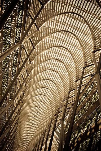為了達到更輕薄的形體效果,建筑主體采用竹鋼搭建,豎向的立柱每根都為承重住,從而達到均勻受力的效果。“柱”與“梁”的連接部分采用簡單的交錯堆疊起來進行構(gòu)造的方法,使其在形式上產(chǎn)生出類似斗拱結(jié)構(gòu)的效果。
