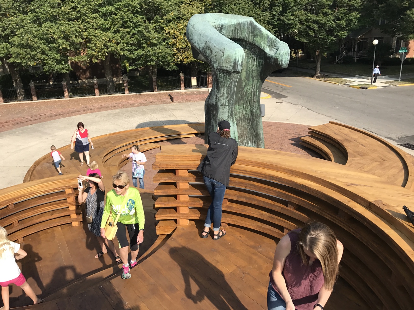 該設(shè)施為社區(qū)提供了一個不管從字面上還是隱喻上來看,都聚集,交流并且振奮人心的地方。從位于東半部的摩爾雕塑周邊開始,大型木材轉(zhuǎn)盤組成了一系列向西上升的底座。
